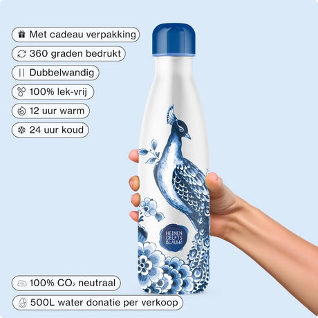 1 á 2 werkdagen levertijdReguliere prijs €29,95Eenheid prijs /Niet beschikbaarIZY Drinkfles - Peacock | Luxe Thermofles 500ML - Heinen Delfts Blauw Collectie
