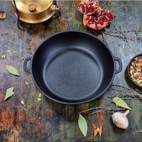 Op voorraadReguliere prijs €42,50Eenheid prijs /Niet beschikbaarMaysternya Gietijzeren Barbecuepan met handvaten - Ø 34 x 7 cm