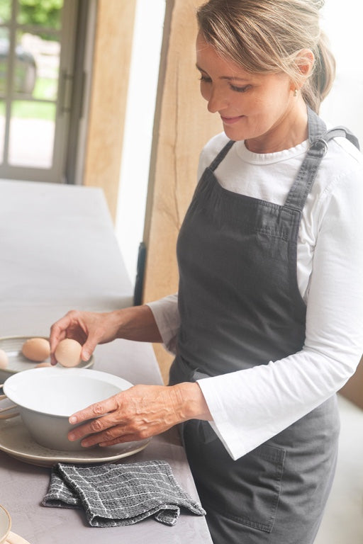 Het Walra schort is voorzien van een handige opbergzak aan de voorzijde. Perfect voor het bewaren van een theedoek, kookgerei of receptenkaart. Verkrijgbaar in verschillende neutrale kleuren die passen in elke keukenstijl – van modern tot landelijk.