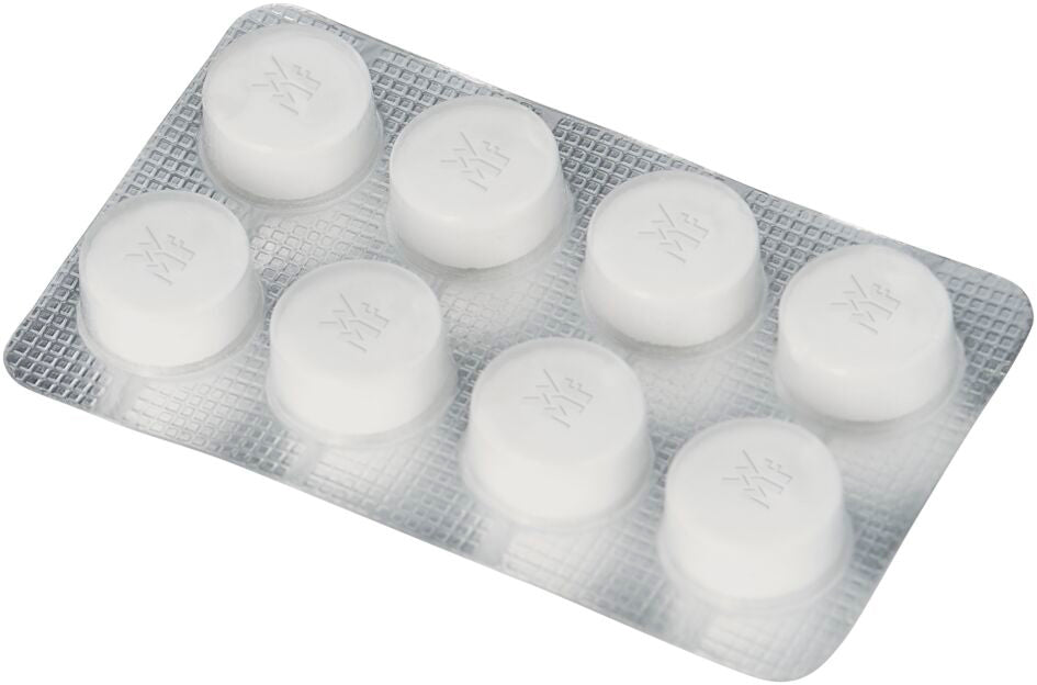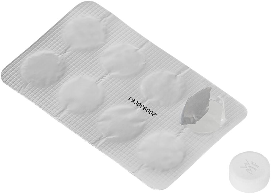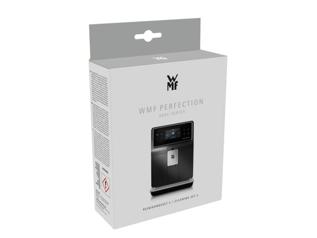 Met de WMF Perfection Reinigingsset houdt u uw volautomatische koffiemachine in topconditie. De hoogwaardige ontkalker in de set verwijdert effectief kalkaanslag, wat bijdraagt aan een langere levensduur van de volautomaat en het behoud van de perfecte koffiesmaak. De reinigingstabletten zijn speciaal ontwikkeld voor het verwijderen van koffieaanslag en vetresten aan de binnenkant van de machine. De set bevat een waterfilter, acht reinigingstabletten, twee zakjes ontkalker, een teststrip voor de waterhardheid, een reinigingsborstel voor de melkslang en een reinigingsdoekje voor de buitenkant van de machine.
