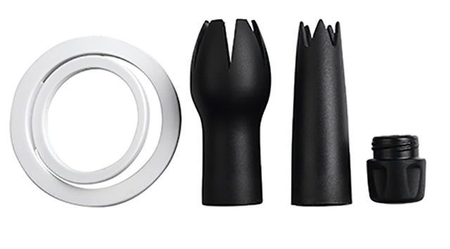 De onderdelenset voor de iSi Dessert Whip (Mini) bestaat uit een spuitmond tulp (2325), spuitmond standaard (2324), een afdekdop (2328) en een afdichtring (2234).