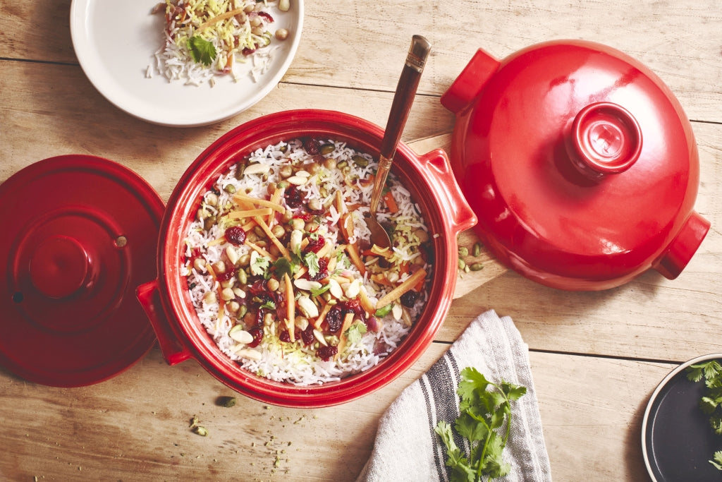 De Emile Henry Rijstpot Ø19,5 cm is ontworpen om rijst en granen perfect te koken en te serveren. Het unieke keramiek houdt warmte vast en zorgt voor gelijkmatig garen, zodat je altijd een luchtige en smaakvolle rijst krijgt.