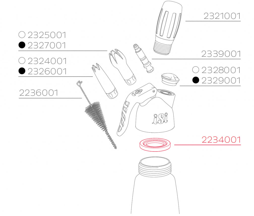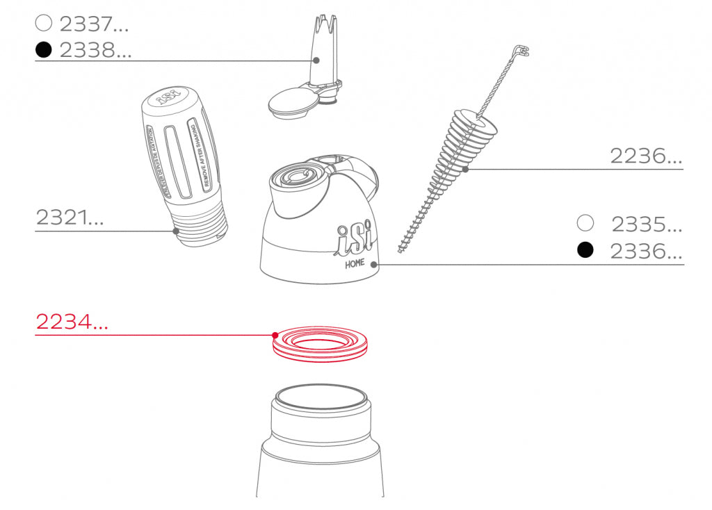 De afdichtingsring is geschikt voor de fles van de iSi Profi Whip 0,5 L en 1 L, iSi Easy Whip 0,25 L en 0,5 L en de iSi Dessert Whip 0,25 L en 0,5 L. De ring zit standaard meegeleverd in elke set maar kunt u ook los bestellen.