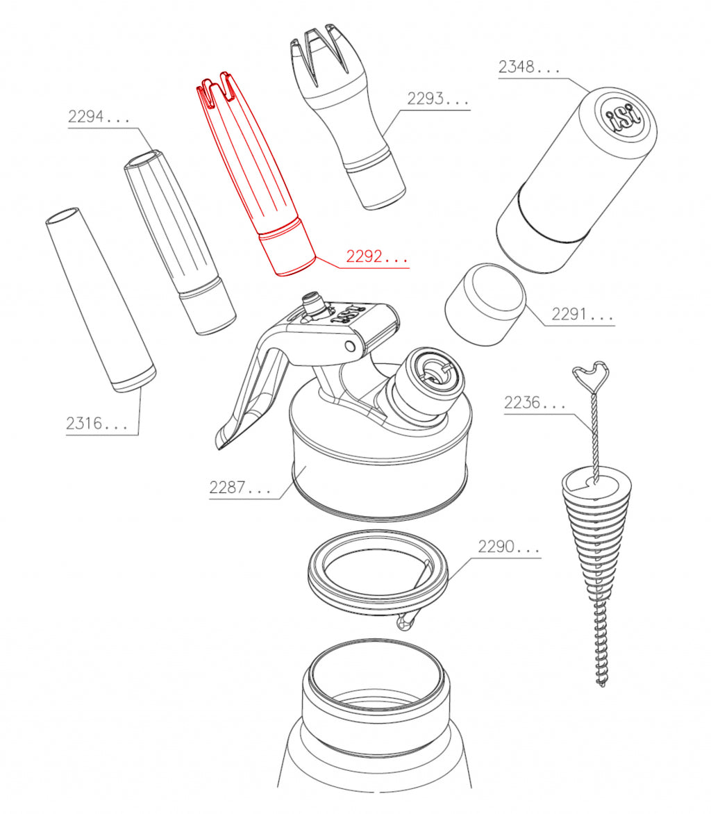 Dit onderdeel is een opzetstuk voor de iSi Gourmet Whip 0,25 L, 0,5 L en 1 L en voor de iSi Thermo Whip 0,5 L. Dit opzetstuk zit standaard meegeleverd in elke set maar kunt u ook los bestellen.