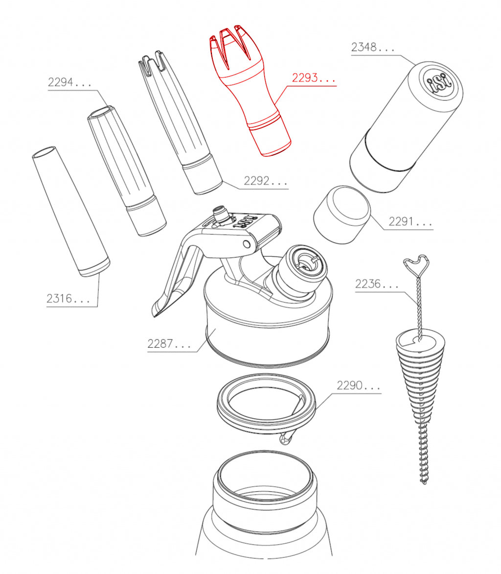 Dit onderdeel is een opzetstuk voor de iSi Gourmet Whip 0,25 L, 0,5 L en 1 L en voor de iSi Thermo Whip 0,5 L. Dit opzetstuk zit standaard meegeleverd in elke set maar kunt u ook los bestellen.
